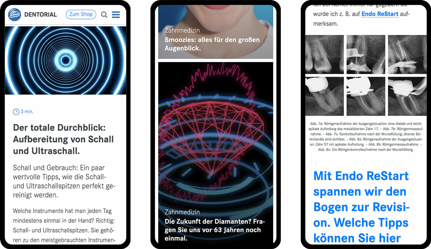 Als Alternative für den Ausfall von so ziemlich jedem persönlichen KundInnenkontakt, insbesondere der IDS (wir schreiben das Jahr 2021, Corona wütet), ist der Wunsch entstanden, den KundInnen auf eine andere Art einen Mehrwert zu bieten. Das Ergebnis: Dentorial, ein Magazin mit dentaler Tiefe und Nachfolger des Komet Magazins.