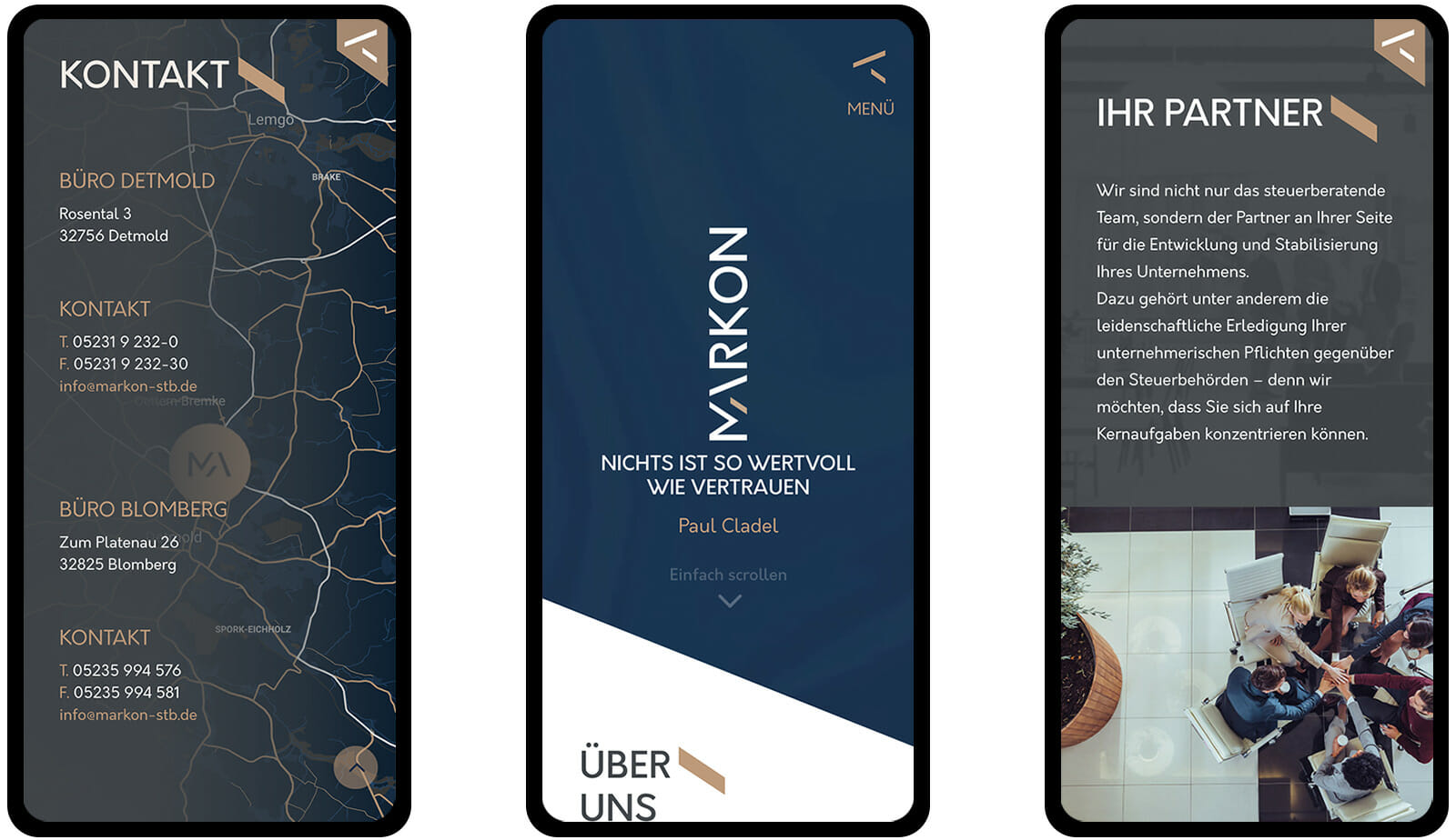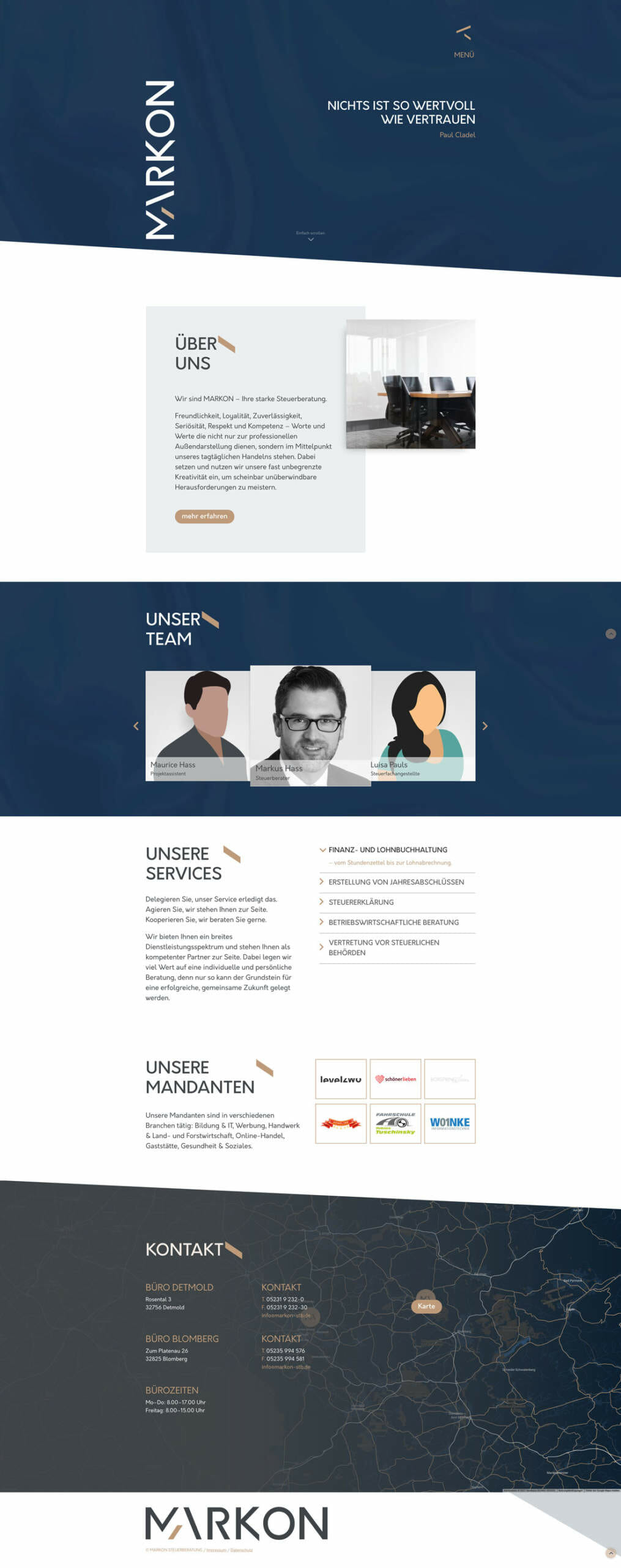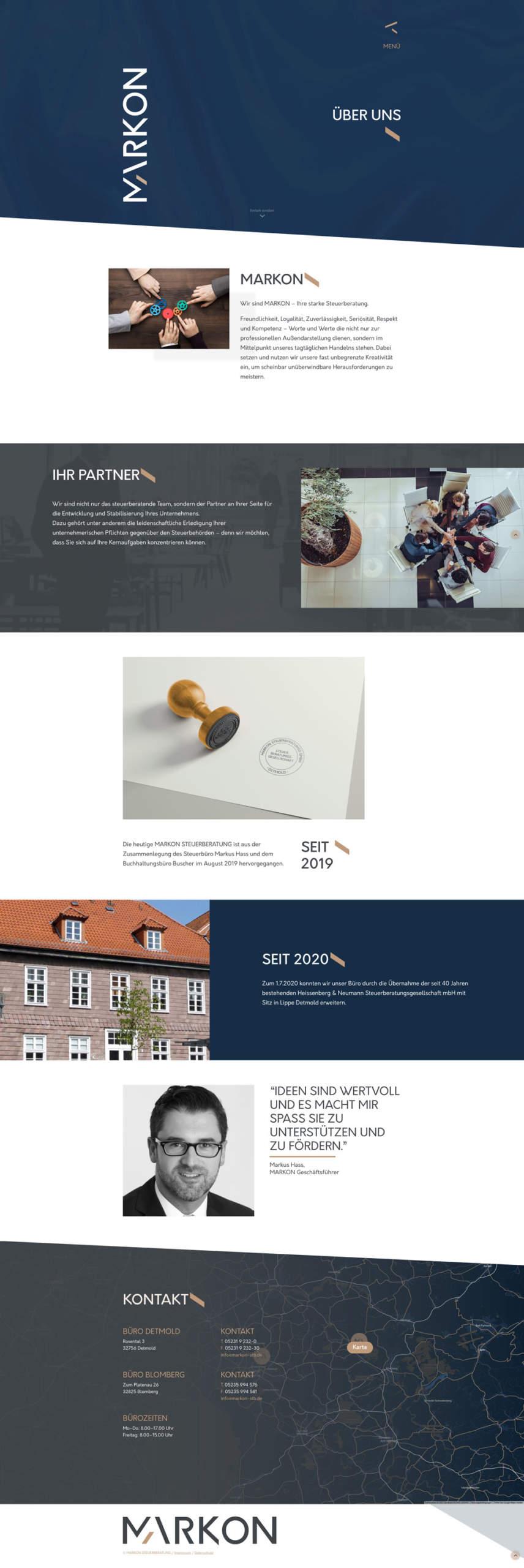 MARKON ist eine junge Steuerberatung aus Detmold, OWL. Da wir zu ihren Klienten gehören, war es wohl sehr naheliegend uns mit dem neuen Webauftritt zu beauftragen … sonst hätte es aber auch Ärger gegeben. :)